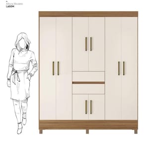 Com oito portas e duas gavetas espaçosas, oferece amplo armazenamento para roupas, acessórios e objetos pessoais.