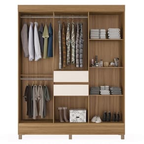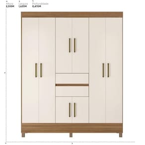 Com oito portas e duas gavetas espaçosas, oferece amplo armazenamento para roupas, acessórios e objetos pessoais.