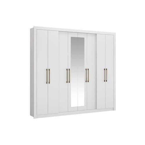 Guarda Roupa Casal 8 Portas e 4 Gavetas c/ Espelho Héster Branco - Carraro
