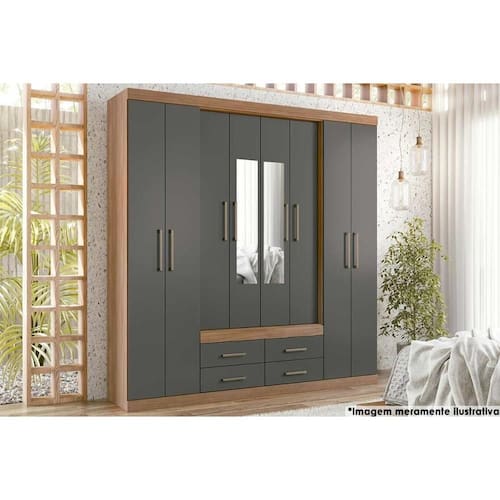 Guarda Roupa Casal 8 Portas e 4 gavetas c/ Espelho Nápoles Jatoba/Grafitte - Santos Andirá