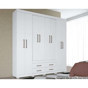 Guarda Roupa Casal 8 Portas e 4 Gavetas c/ Pés Nápoles Branco - Santos Andirá