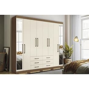 Guarda Roupa Casal 8 Portas e 6 Gavetas c/ Espelho e Pés Master 8.6 jatoba/Areia - Santos Andirá