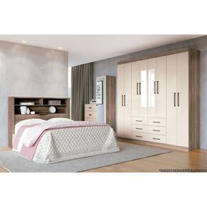 Guarda Roupa Casal 8 Portas e 6 Gavetas c/ Espelho Liverpool Atacama/Grafitte - Santos Andirá - Blush