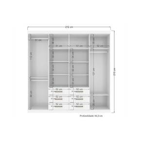 Dimensões(Cm): Comprimento(Profundidade): 46cm x Largura: 212cm x Altura: 210cm