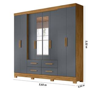 Material da estrutura: MDP | Cômodo Indicado: Quarto | Possui puxadores: Sim | Quantidade de Puxadores: 12 | Possui Cabideiros/Calceiro: 3 | Possui Maleiro: 4 | Quantidade de Gavetas: 4 | Quantidade de Portas: 8 | Material dos Puxadores: MDF | Cor: Freijó/Cinza | Possui Pés: Sim | Tipo de Guarda Roupa: Casal | Dimensões do Guarda Roupa (A X L X P): A 2,22 x L 2,16 x P 0,47 | Garantia do Fabricante: 3 Meses | Dimensões do Ponte (A X L X P): A 2,22 x L 2,37 x P 0,47 | Possui Prateleira: Sim | Quatidade de Prateleira: 8 | Possui Gaveta: Sim | Tipo da Corrediça da Gaveta: Telescópicas | Possui portas: Sim | Tipo de Porta: Giro | Possui porta Basculante: Não | Material da Dobradiça ou Corrediça: Metalica | Possui Nichos: Sim | Instruções/Cuidados: Evite contato com líquidos. Nada de lavar os móveis. Móveis não gostam de umidade. Não deixe o móvel exposto ao sol. Os acessórios também precisam de limpeza. | Número de Nichos: 11 | Material para Filtro: MDP | Material dos Pés: PVC | Possui Espelho: Sim | Quantidade de espelhos: 4 | Material da Estrutura: MDP | Nome do Simples no Fornecedor: Guarda Roupa Casal 8 portas espelho 4 gavetas San Lorenzo Plus | Quantidade de Volumes: 4 | Peso Bruto (volume 01): 54,147 | Comprimento x Largura x Altura (volume 01): 203x59,5x7 | Peso Bruto (volume 02): 45,650 | Comprimento x Largura x Altura (volume 02): 242x44,8x6,9 | Peso Bruto (volume 03): 45,750 | Comprimento x Largura x Altura (volume 03): 198,5x44,8x9,8 | Altura do produto com Embalagem: 2,220 | Largura com embalagem: 2,370 | Comprimeinto com Embalagen: 47 Cor: Freijó / Cinza
