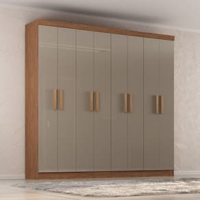 Caracteristicas: - Estrutura em MDP - 2 gavetas internas (Suporta ate 5 kg cada) - Corredicas metalicas de 300mm - Medida interna util das gavetas: Alt. 0,09 x Larg. 0,33 x Comp. 0,40 - Dobradicas metalicas de 25mm - Corredicas metalicas de 300mm - 8 Portas de bater - 8 Puxadores em MDF madeirado - 4 prateleiras (Suporta ate 5kg cada) - Possui 1 cabideiro em madeira revestido - Nao possui pes - Acabamento de pintura: Fosco - Garantia de 3 meses