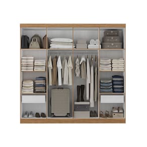 Caracteristicas: 2 Cabideiros 2 Gavetas com corredicas metalicas 8 Portas com dobradicas de metal 4 Prateleiras internas Espaco para calcados e roupas longas Estrutura em MDP/MDF 12mm Puxadores em MDF Maleiro amplo