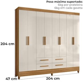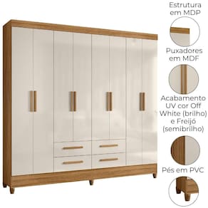Guarda Roupa Casal 8P 204 cm Florida Freijo Cinza Moval - Off White