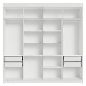 O Guarda-Roupa Venus oferece versatilidade para organizar seu espaço da melhor forma. Com dobradiças com amortecimento, as portas fecham suavemente. As gavetas com corrediças telescópicas permitem abertura total, enquanto o amplo maleiro é perfeito para itens maiores. Além disso, você pode ajustar as gavetas e prateleiras para personalizar o interior conforme suas necessidades.