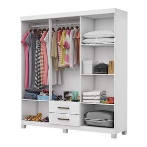 Guarda-Roupa A22 é um produto perfeito para quem possui um ambiente com espaço reduzido e ainda procura qualidade e durabilidade no mesmo móveis. Possui 1,87m de altura, 1,53m de largura e 0,40m de profundidade combinado com 6 portas, 2 gavetas, 2 prateleiras e um grande cabideiro, deixando o produto com uma ótima divisão interna. O maleiro é ideal para guardar malas, cobertores, edredons. O cabideiro além de resistente, é ideal para pendurar pares de blusas, camisas acessórios. As prateleiras são perfeitas para colocar roupas como blusas, shorts, regatas, kits de maquiagem, toalhas, caixinhas com acessórios e bolsas menores. As gavetas fixadas sobre corrediças metálicas, são ideais para guardas blusas dobradas, shorts, malhas e roupas íntimas. Estrutura do produto em mdp.