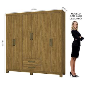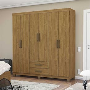 Guarda-Roupa A22 é um produto perfeito para quem possui um ambiente com espaço reduzido e ainda procura qualidade e durabilidade no mesmo móveis. Possui 1,87m de altura, 1,53m de largura e 0,40m de profundidade combinado com 6 portas, 2 gavetas, 2 prateleiras e um grande cabideiro, deixando o produto com uma ótima divisão interna. O maleiro é ideal para guardar malas, cobertores, edredons. O cabideiro além de resistente, é ideal para pendurar pares de blusas, camisas acessórios. As prateleiras são perfeitas para colocar roupas como blusas, shorts, regatas, kits de maquiagem, toalhas, caixinhas com acessórios e bolsas menores. As gavetas fixadas sobre corrediças metálicas, são ideais para guardas blusas dobradas, shorts, malhas e roupas íntimas. Estrutura do produto em mdp.