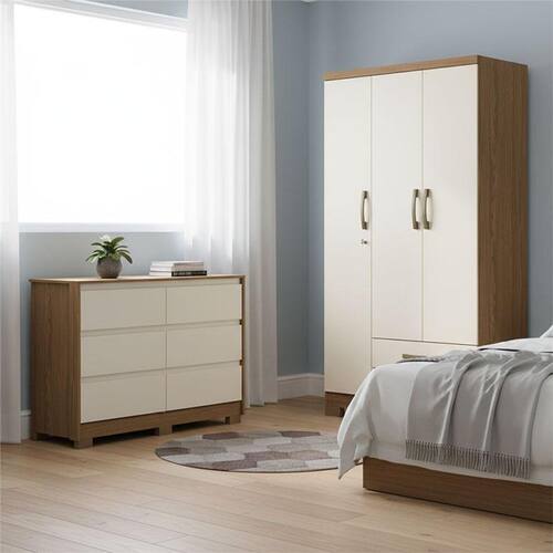 Guarda Roupa Casal Açaí Ambiente e Cômoda Ravenna Nature Off White - Henn