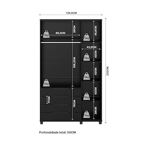 Guarda-Roupa Casal Allen 3 Portas 4 Gavetas Preto