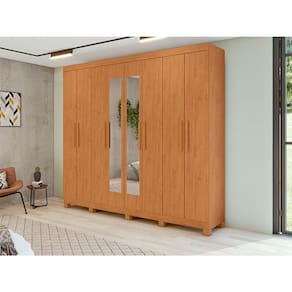 Guarda Roupa Casal Ambiente Andara Soft 8 Portas Amêndoa Clean com Espelho e Pés - Lopas