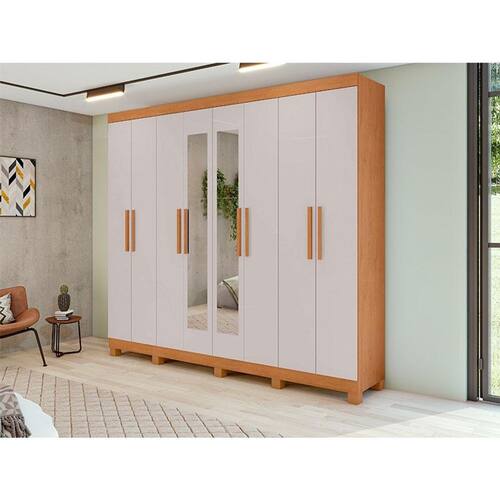Guarda Roupa Casal Ambiente Andara Soft 8 Portas Amêndoa Clean Off White com Espelho e Pés - Lopas