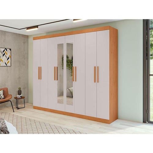 Guarda Roupa Casal Ambiente Andara Soft 8 Portas Amêndoa Clean Off White com Espelho - Lopas