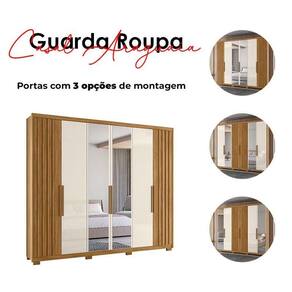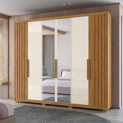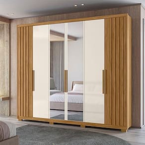 Guarda Roupa Casal Ambiente Araguaia 6 Portas Freijó Off White com Espelho - Moval