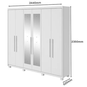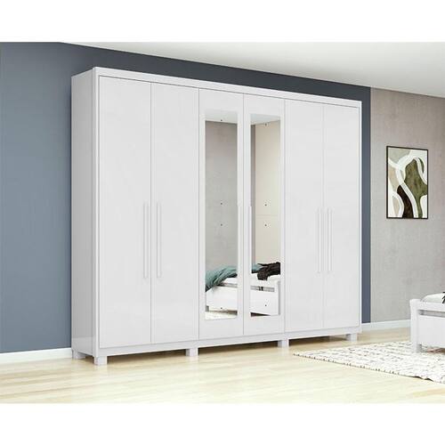 Guarda Roupa Casal Áries 6 Portas Branco Brilho com Pés e Espelho - Lopas