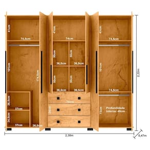 O Guarda Roupa B23063 foi desenvolvido pela Araplac para oferecer funcionalidade, elegância e durabilidade. Com 6 portas e 3 gavetas proporciona amplo espaço interno para manter as roupas, acessórios e objetos pessoais sempre organizados. Seu design moderno se adapta a todos os espaços, adicionando elegância ao ambiente. Confira as características técnicas e aproveite.