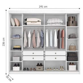 Guarda Roupa Casal Ambiente Belmonte 2 Portas 4 Gavetas Neve com Espelho – Novo Horizonte
