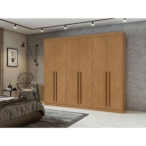 Guarda Roupa Casal Ambiente Bertha 6 Portas 2 Gavetas Amêndoa Clean - Lopas