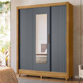 Guarda Roupa Casal Ambiente Bolívia 3 Portas Freijó Cinza com Espelho - Moval
