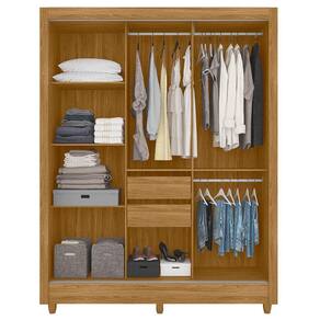 Está montando seu quarto? Apresentamos para você este belo guarda roupa da linha Bolívia. Com um design moderno, possui três portas deslizantes, sendo a porta central com espelho. As duas portas laterais apresenta frisos em baixo relevo, dando um toque de sofisticação. Além disso, conta com trilhos em alumínio garantindo um deslizamento suave. Seu espaço interno bem distribuído inclui duas gavetas equipadas com corrediças metálicas garantindo uma melhor organização. Os puxadores em MDF dão um acabamento refinado e os pés em PVC garantem estabilidade. Fabricado pela Moval, é desenvolvido em MDP/ MDF. Sendo a opção ideal para quem deseja compor o quarto com requinte, praticidade e alta qualidade, aproveite!