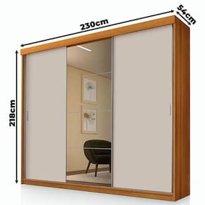 Guarda Roupa Casal Ambiente Ímola 3 Portas de Correr com Espelho Freijó Off White Pina - Luapa