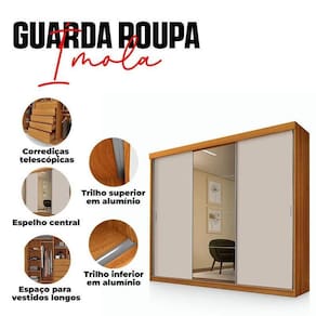 Está montando seu quarto? Apresentamos para você este belo guarda roupa da linha Ímola. Possuindo três portas de correr, sendo a porta central equipada com espelho. Internamente, conta com cinco gavetas com corrediças telescópicas, facilitando o deslizamento suave. Com nicho central para organizar seus objetos e amplo espaço para acomodar vestidos longos. Desenvolvido em 100% MDF, é fabricado pela Luapa e projetado cuidadosamente para combinar com diversos tipos de ambientes, garantindo uma boa durabilidade e resistência. Confira e aproveite!