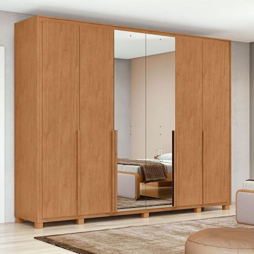 Guarda Roupa Casal Ambiente Imperatore 3 Portas Amêndoa Clean com Espelho e Pés – Lopas