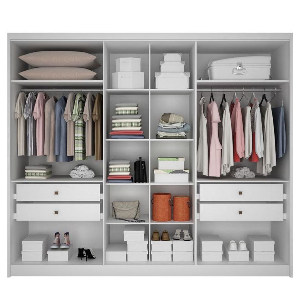 Guarda Roupa Casal Ambiente Livorno 6 Portas 4 Gavetas Neve com Nicho e Espelho – Novo Horizonte