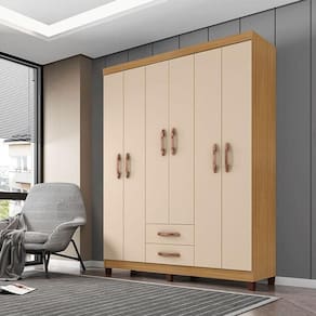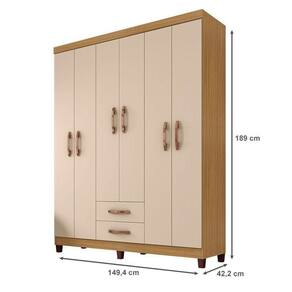 Guarda Roupa Casal Ambiente Modena 6 Portas Carvalho Americano Off White - Incorplac
