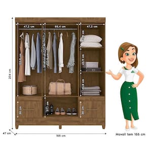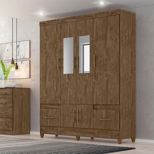 Guarda Roupa Casal Ambiente MS912 6 Portas Castanho Wood com Espelho - Moval