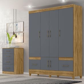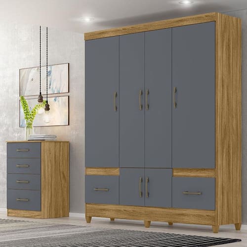 Guarda Roupa Casal Ambiente MS912 e Cômoda MS913 Freijó Cinza – Moval