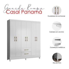 Guarda Roupa Casal Ambiente Panamá 6 Portas Branco Brilho - Moval