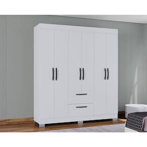 Está montando seu quarto? Apresentamos para você este belo guarda roupa da linha Tóquio. Contando com seis portas amplas proporcionando bastante espaço para guardar suas roupas e acessórios. E duas gavetas com corrediças metálicas, garantindo um deslizamento suave. Os puxadores e pés são em plástico resistente, dando uma melhor estabilidade e praticidade. Fabricado pela Poquema, é desenvolvido em MDP de alta qualidade sendo perfeito para quem procura um guarda roupa com design moderno e boa durabilidade. Confira e aproveite!
