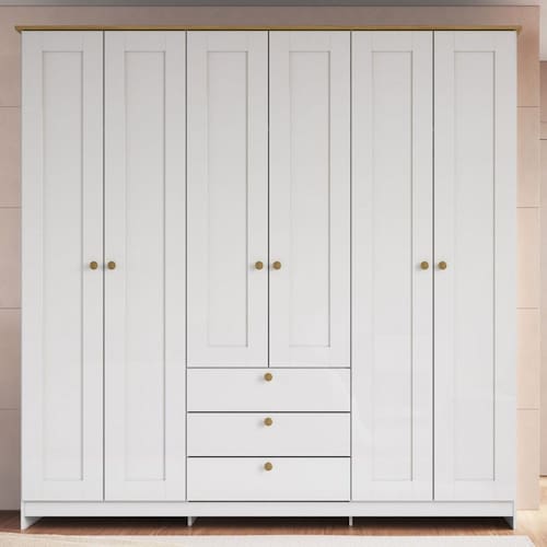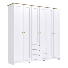 O(a) Guarda-Roupa Casal Americano 6 Portas 3 Gavetas Branco/Ipê - Decibal é produzido em MDP na escala de brilho Brilho, e possui um grau de dificuldade de montagem: Médio.