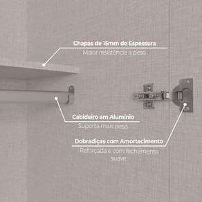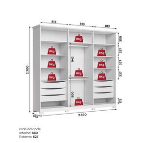 O Roupeiro Americano Prime foi deselvolvido para o público que busca elegância e qualidade. Possui 06 portas com usinados de baixo relevo, 06 gavetas com corrediças telescópicas e usinagem para pega, cabideiros e calceiros em alumínio, puxadores em alumínio, dobradiças com amortecimento, chapéu com molduras de 25 mm, ripas laterais, frentes e tampos das gavetas na cor da caixa. Seu amplo espaço interno oferece uma organização eficiente e prática para suas roupas. Cor: Branco Altura (cm): 230 Largura (cm): 256 Profundidade (cm): 52,5 Cor Interna: Trama Branco (Branco Acinzentado) Escala de Brilho: Fosco Ambiente: Quarto Acabamento: Pintura UV Texturizada Possui Vidros: Não Material Principal: MDF/MDP Produto Suporta até (Kg): 90 Kg Possui Espelho: Não Possui Gavetas: Sim - Quantidade: 6 Und. - Peso Maximo Suportado por Gaveta: 3 Kg Possui Pés: Sim Quantidade de Pés: 8 Und. - Material dos Pés: ABS Possui Portas: Sim - Quantidade: 6 Und. - Tipo: Bater Possui Prateleiras: Sim - Peso Maximo por Prateleira: 8 Kg - Quantidade: 7 Und. Recomendações de Uso, Manutenção e Limpeza: Para limpeza de seu móvel, use uma flanela limpa e seca. Não utilize produtos químicos que possam danificar o produto. Sistema de Montagem: Parafusos e Cavilhas Necessita Montagem: Sim Complexidade da Montagem: Alta: Deve ser montado por um montador especializado. Itens Inclusos: 1 Guarda Roupa e Instrução de Montagem Garantia: 90 Dias