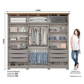 Guarda Roupa Casal Americano Ambiente 6 Portas 6 Gavetas com Pés Cinza Nature - Henn