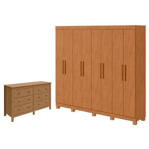 Começou a montar seu quarto? Então apresentamos para você este belo conjunto composto pelo guarda roupa da linha Andara e a cômoda da linha Maggiore. O guarda roupa possui oito portas e quatro gavetas internas com corrediças telescópicas, garantindo um deslizamento mais suave. Os puxadores em MDF agregam modernidade e os pés em PVC, garantindo uma boa durabilidade. Já a cômoda oferece seis gavetas garantindo um excelente espaço para acomodar seus itens. Os puxadores em metal entrega um acabamento refinado, enquanto os pés em MDF proporciona estabilidade e elegância. Fabricados pela Lopas, apresentam um design sofisticado e materiais em MDP/ MDF de alta qualidade, sendo o conjunto perfeito para compor o quarto do casal com estilo, aproveite!