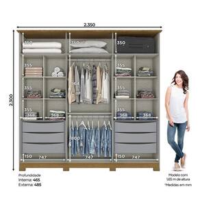 Guarda Roupa Casal Andréas 6 Portas Cinza Nature - Henn