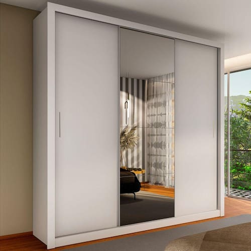 O(a) Guarda-Roupa Casal Luna 3 Portas 4 Gavetas com Espelho Branco - Carioca Móveis é produzido em MDP na escala de brilho Brilho, e possui um grau de dificuldade de montagem: Médio.