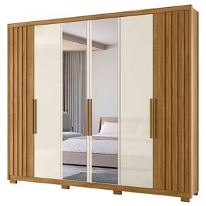 Guarda Roupa Casal Araguaia 6 Portas Freijó Off White com Espelho Moval