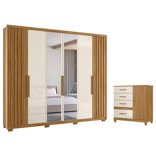 Guarda Roupa Casal Araguaia e Cômoda Vênus Freijó Off White com Espelho e Pés - Moval
