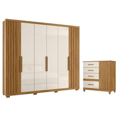 Começou a procurar móveis para seu quarto? Então apresentamos para você este belo conjunto composto pelo guarda roupa da linha Araguaia e a cômoda da linha Vênus. O guarda roupa se destaca por suas seis portas, sendo duas com detalhes ripados em MDF. Com três opções na hora da montagem das portas, se adapta de acordo com o seu gosto. Internamente, conta com quatro gavetas com corrediças telescópicas. Combinando com o guarda roupa, a cômoda possui uma porta com detalhes frisados e quatro gavetas com corrediças metálicas. Assim como o guarda roupa, a cômoda conta com puxadores em MDF e pés em PVC entregando mais estabilidade e durabilidade. Fabricado pela Moval, são desenvolvidos em MDP. Sendo perfeito para quem busca qualidade, beleza e organização, aproveitem!