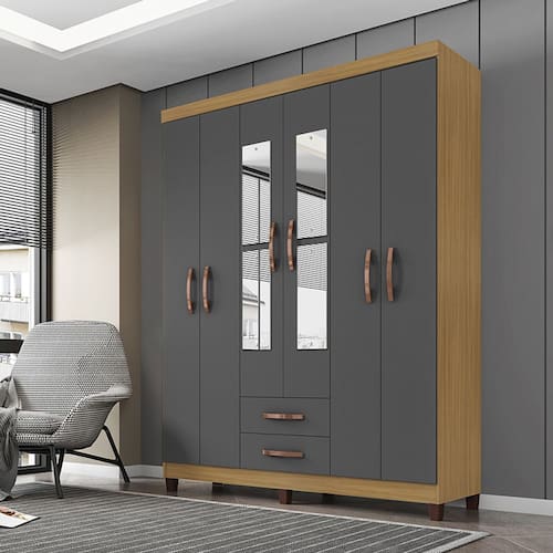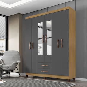 Guarda Roupa Casal Aspen 6 Portas 2 Gavetas com Espelho - Clique Chique Móveis