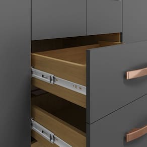 Funcionamento Suave: Equipado com dobradiças de 26mm e corrediças metálicas para um fechamento e abertura sem esforço.