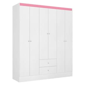 Guarda Roupa Casal Astro 6 Portas 2 Gavetas Branco Rosa Acetinado - THB