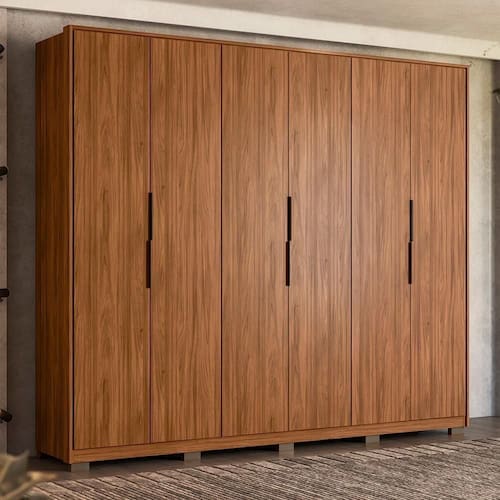 Guarda Roupa Casal Atrice 6 Portas Nogueira Touch Com Pés - Demartêz Nogueira Touch