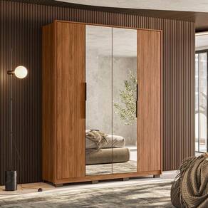 Guarda Roupa Casal Attore 4 Portas Nogueira Touch com Espelho e pés Demóbile - Demartêz
